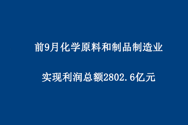 前9月化學原料和制品制造業(yè)實現(xiàn)利潤總額2802.6億元