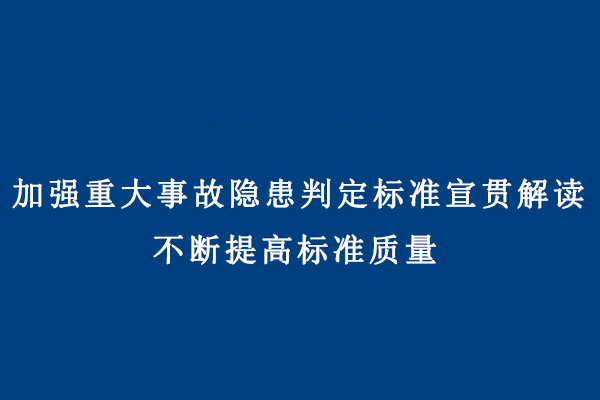 加強重大事故隱患判定標準宣貫解讀,不斷提高標準質(zhì)量