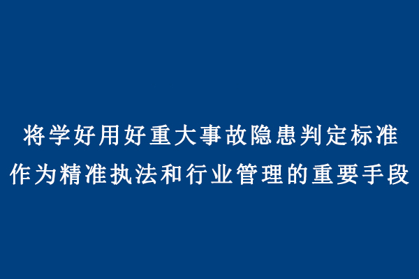 將學好用好重大事故隱患判定標準作為精準執(zhí)法和行業(yè)管理的重要手段